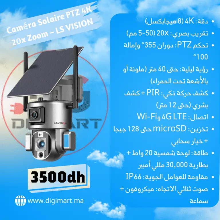 caméra extérieure LS VISION V380 LS-CS3-4G-EU 2K 4G à double lentille PTZ 8W solaire