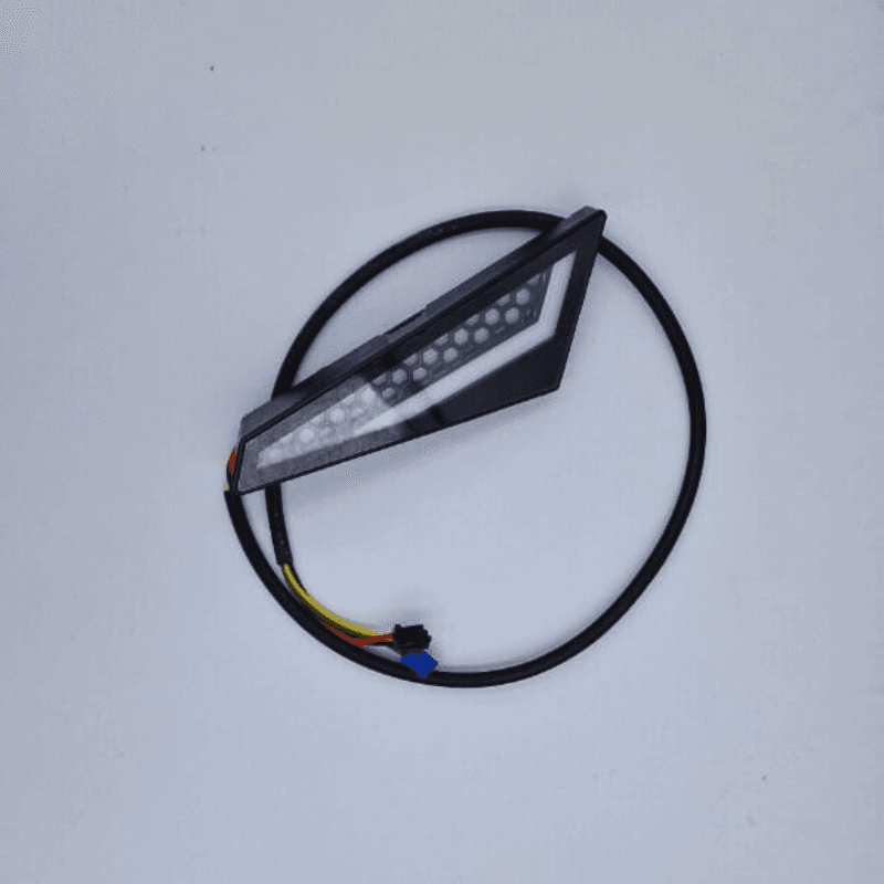 Le signal arrière droit de la trottinette Quikirin T3 est un élément du système de signalisation lumineuse arrière, conçu pour indiquer clairement aux usagers de la route que le conducteur va tourner ou changer de direction vers la droite. Il fait partie d’un système d’éclairage complet et intégré comprenant phares, feux arrière, clignotants avant et arrière, assurant visibilité et sécurité sur la route.